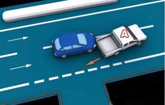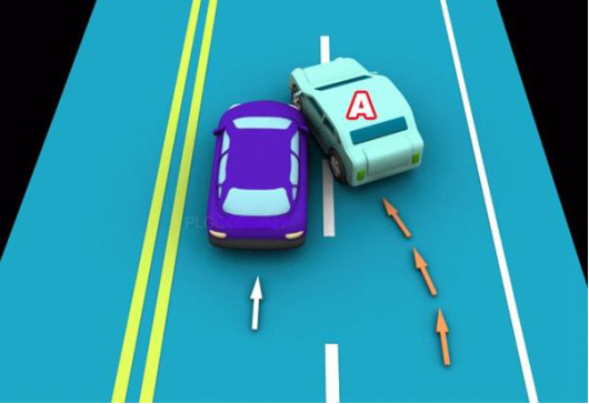 1、变更车道时,未让正在该车道内行驶的车先行的,图中所示为A车负全责。