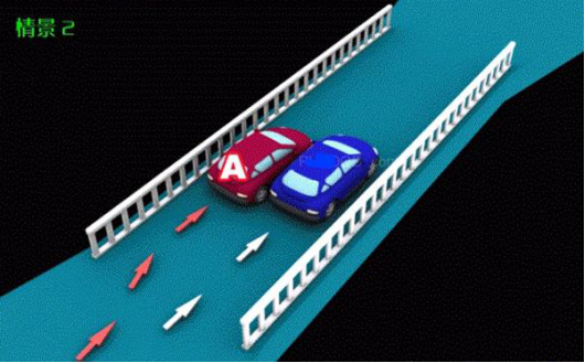 8、行经交叉路口、窄桥、陡坡、隧道时超车的,图中所示为A车负全责。