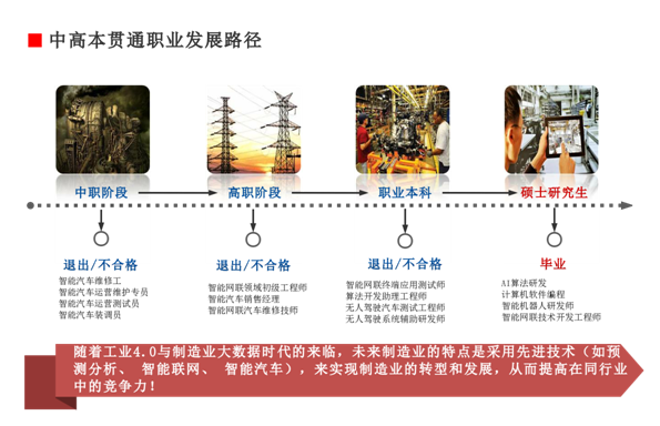因此我系开设智能网联专业贯通培养,依托华为智慧交通新基建项目校企合作、百度阿波罗自动驾驶研发校企合作、北汽新能源校企合作,旨在培养汽车领域智能网联应用型本科人才。