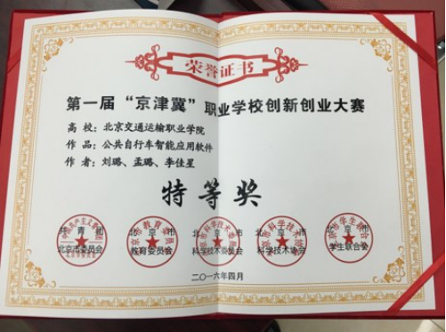 第一届“京津冀”职业院校创新创业大赛 特等奖
