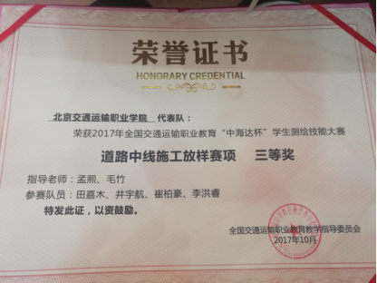 学院道桥系参赛队荣获全国职业院校“中海达杯”学生测绘技能大赛