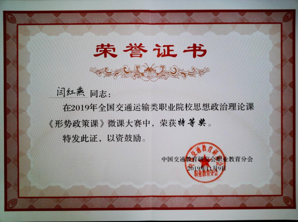 2019全国交通运输类职业院校思想政治理论课微课比赛荣获特等奖