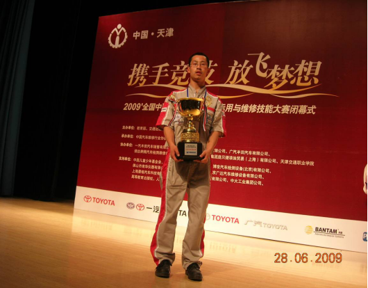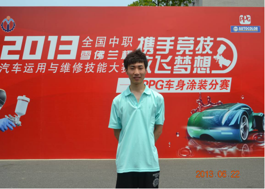 目前在三元桥一汽丰田旗舰店工作,2013年一汽丰田喷漆技能大赛华北区冠军、全国优秀奖