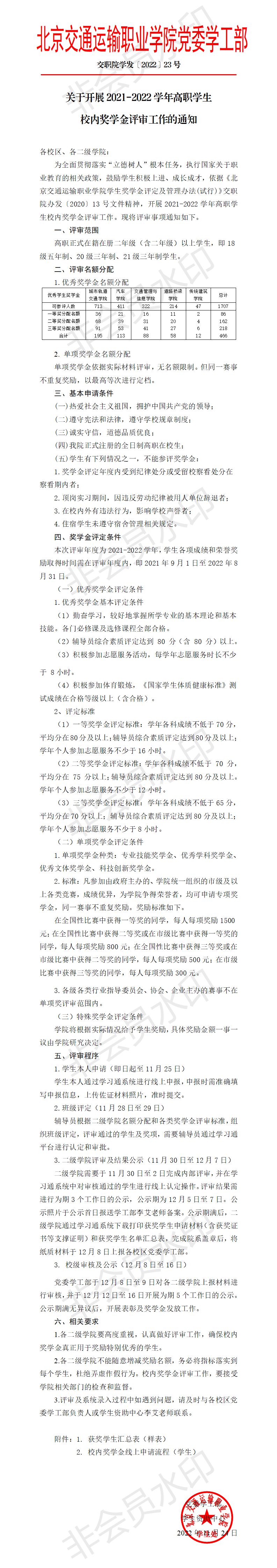 关于开展2021-2022学年高职学生校内奖学金评审工作的通知
