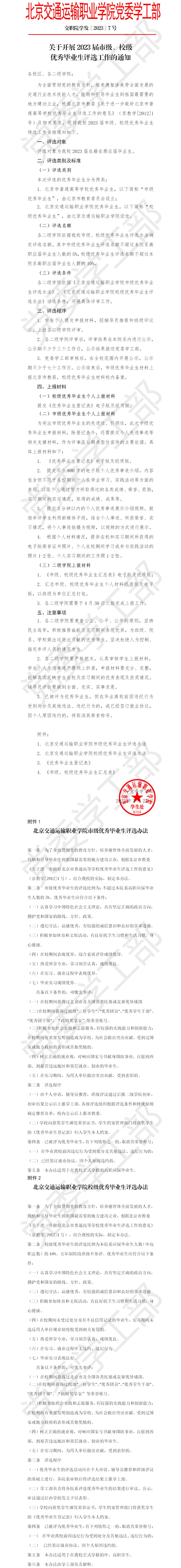 关于开展2023届市级、校级优秀毕业生评选工作的通知