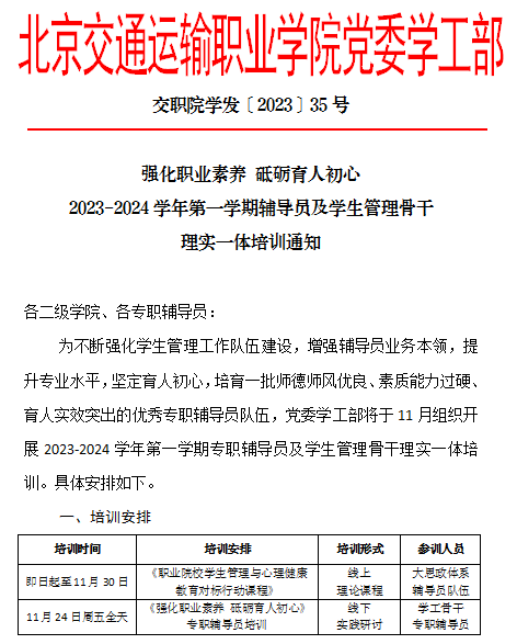 2023-2024-1辅导员及学生管理骨干理实一体培训通知