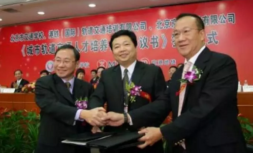 在市交通委的“撮合”下,香港地铁公司、京港地铁公司开始与学院商讨,2006年10月30日学院与香港地铁公司、京港地铁公司正式签署《轨道交通人才培训战略合作备忘录》和《培训合作协议书》。