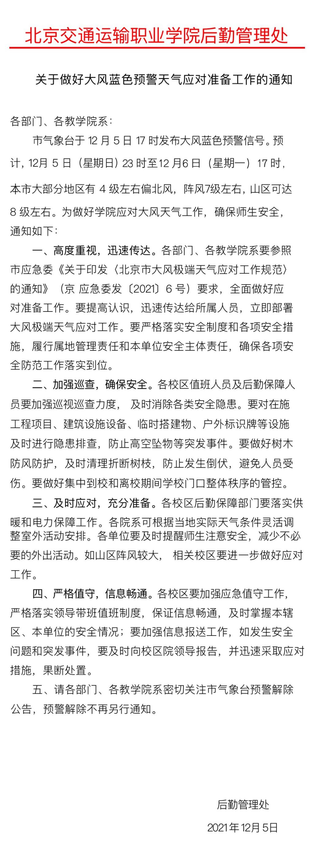 关于做好大风蓝色预警天气应对准备工作的通知