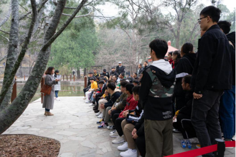 活动第一项由苏春容老师进行现地教学。她带领大家现场学习了习近平同志参观香山革命纪念馆的重要讲话,并从理论和历史的角度阐述了此次活动的目的和意义;在认真听讲后,同学们当即踊跃发言,畅谈体会和感受,现场气氛热烈,不时爆发出阵阵掌声。在随后的参观学习中,师生们在双清别墅、谈心亭、来青轩等地驻足良久,认真观看、共同讨论。