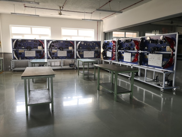 上汽通用ASEP项目理实一体化教学中心面积约1200平方米,设有专用理论教室、工具及资料间、整车实习车间、发动机机械及管理系统实训室、手动及自动变速器实训室、电气及网络系统实训室。其中整车有别克君越、君威、凯越、英朗、雪弗兰科鲁兹等5种车型11辆,发动机共9款14台,手动自动变速器共4种类型14台,GM全球诊断系统GDS2四台,发动机运行台架6台,通用和专用维修工具配备完善并配有相关车型及设备的厂家维修资料,数字化教学资源较为丰富。