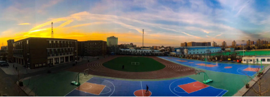 在操场上阳光普照着大地,温暖着刚刚吐绿的树木花草。