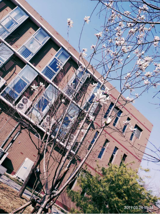 教学楼前面的小树开了不少鲜艳的花,像一个个害羞的玉女,散发出一阵阵淡淡的清香,