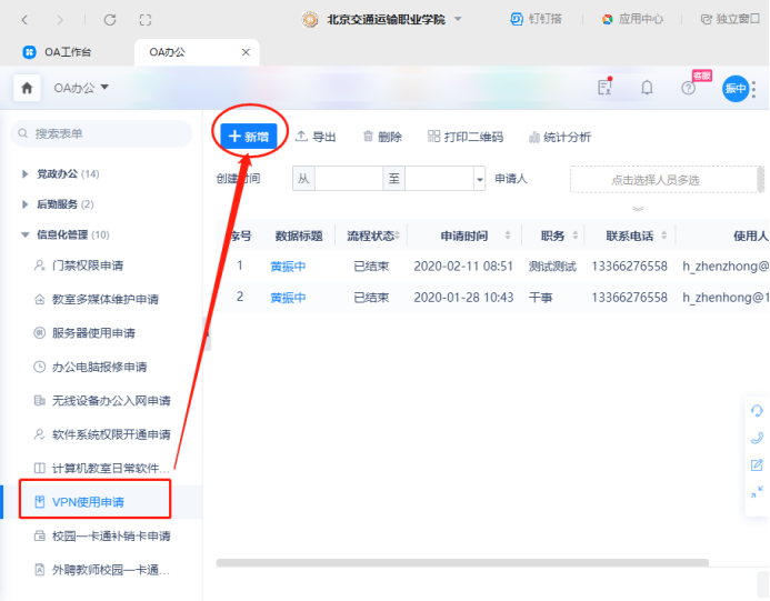 2、在“OA办公”里面,有一个“信息化管理”的分类,展开后即可看到“VPN使用申请”流程。如下图: