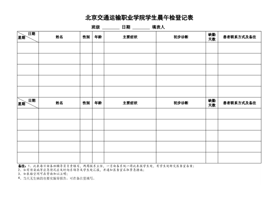 学生晨午检登记表