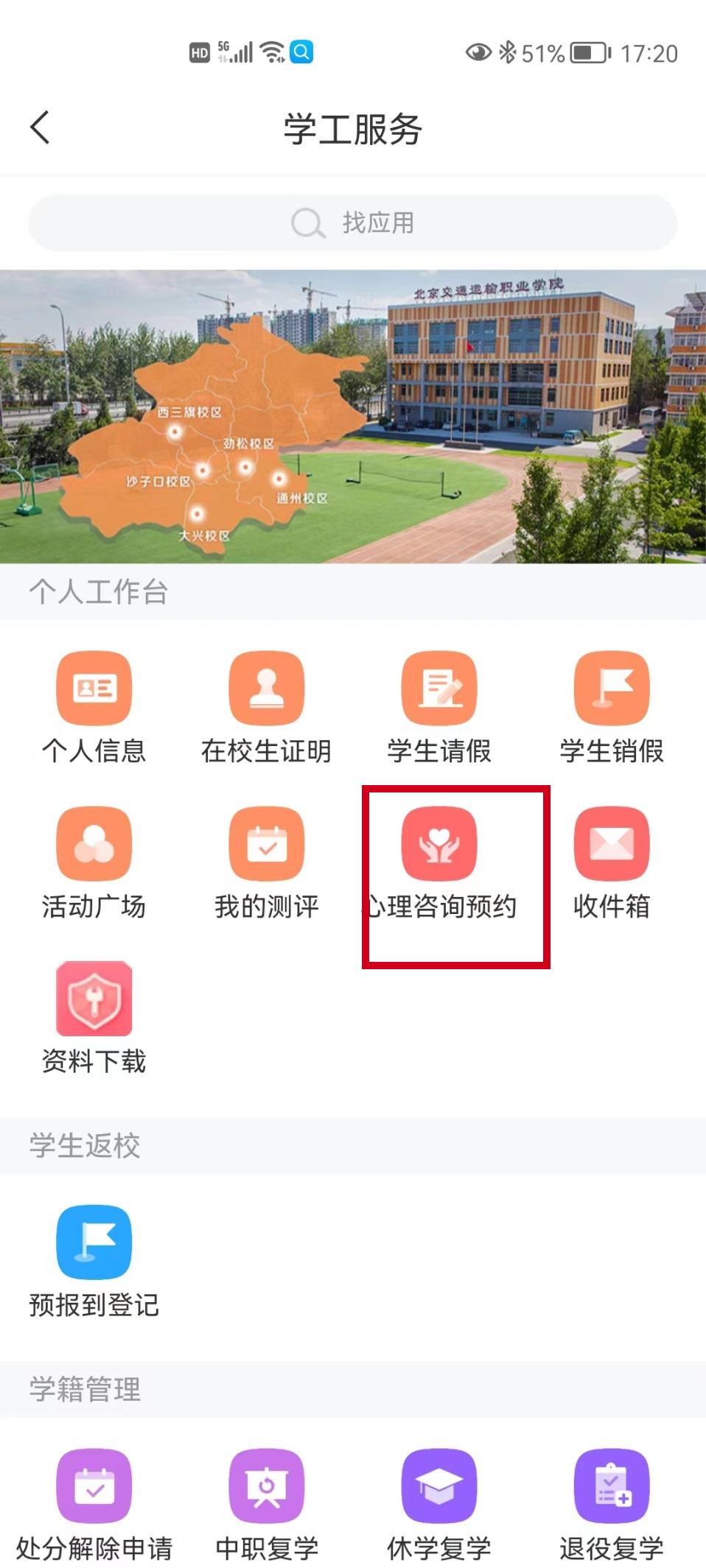 钉钉app—联系所在校区心理老师