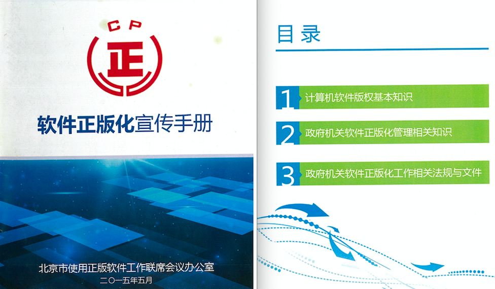 来源声明:以下宣传资料来自北京市使用正版软件工作联席会议办公室于2015年5月发布的软件正版化宣传手册。