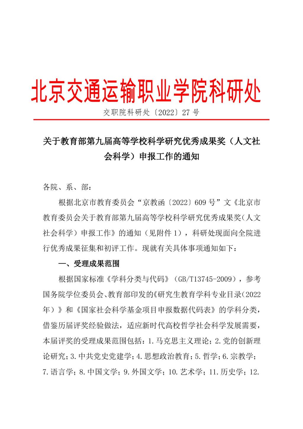 关于教育部第九届高等学校科学研究优秀成果奖(人文社会科学)申报工作的通知