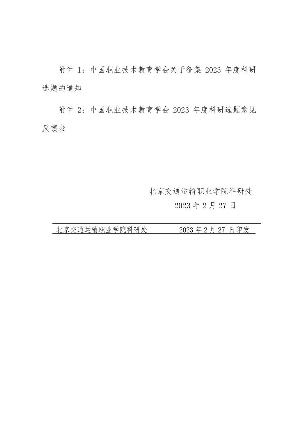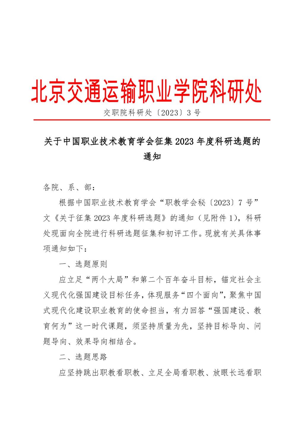 关于中国职业技术教育学会征集2023年度科研选题的通知