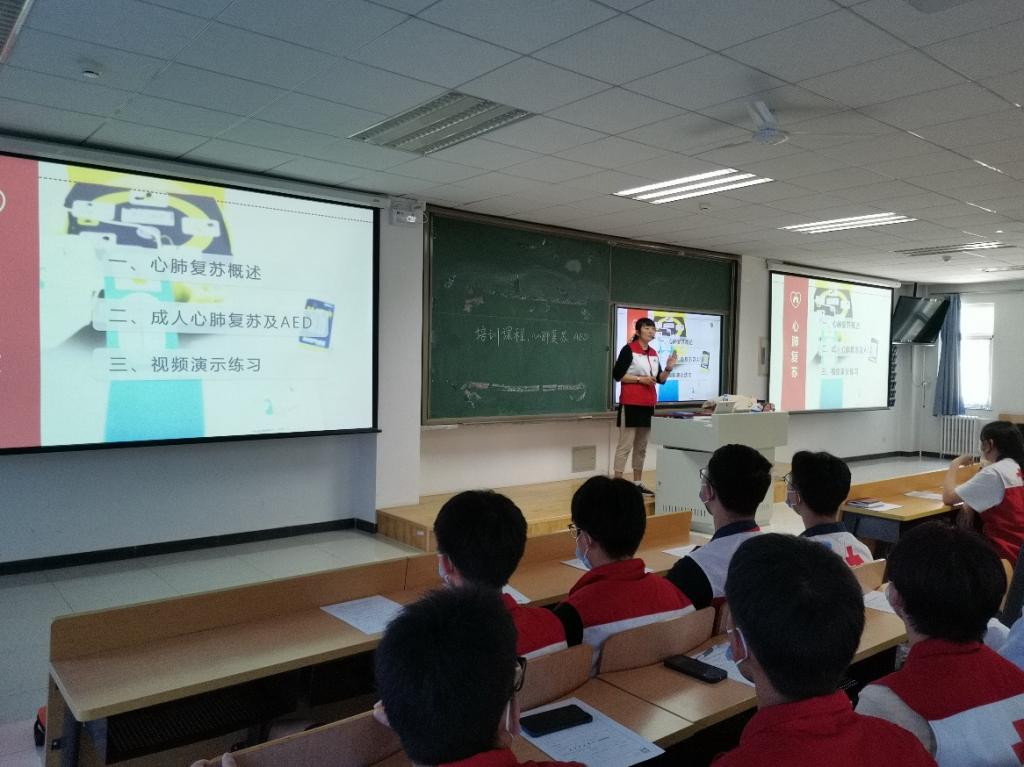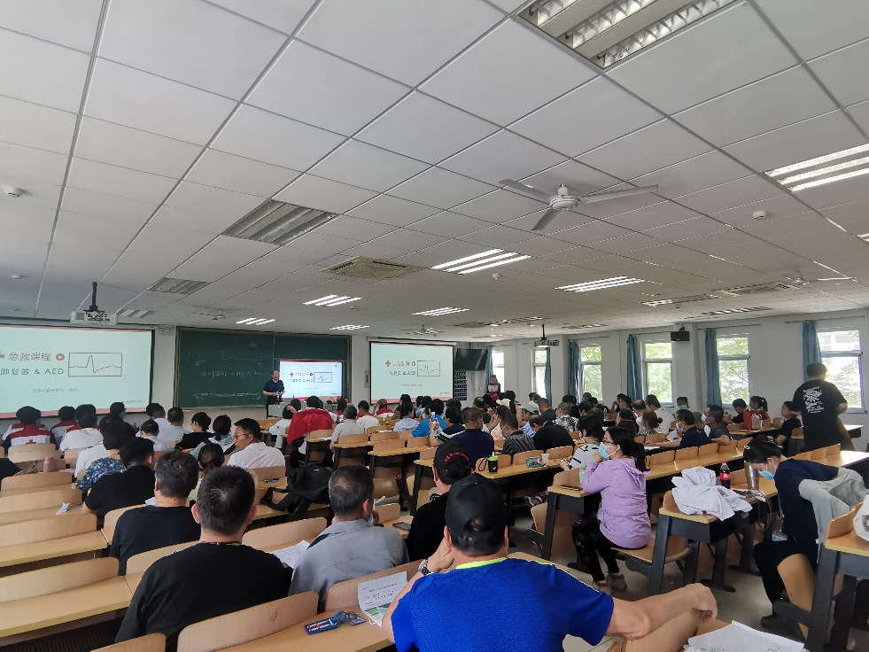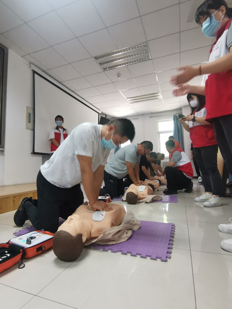 培训中,红十字会有关人员重点讲解了心肺复苏流程和AED的正确使用方法,并进行了"一对一"的专业指导,通过现场轮流操作、加强练习,课程结束后还组织了考核,为考核合格者颁发“北京市红十字会—救护技能证”。